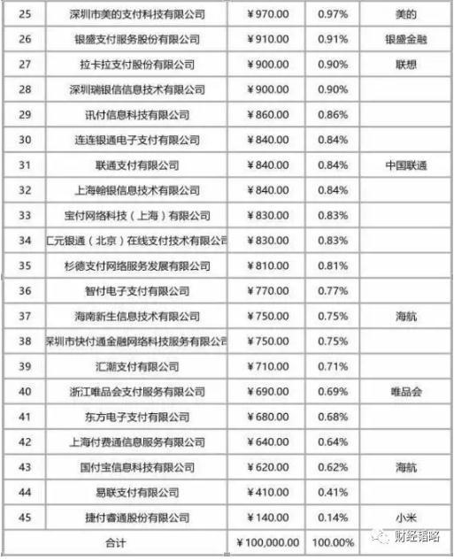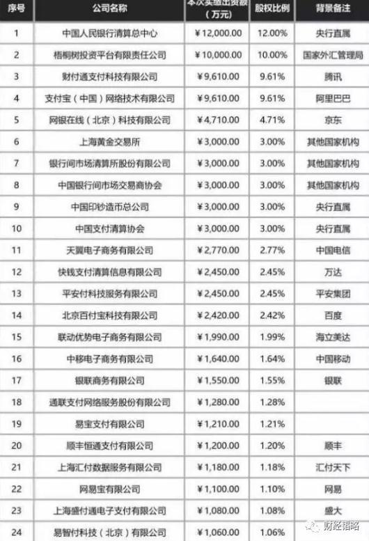 央行把第三方支付“收编了”,下图是网联公司的股东名单: