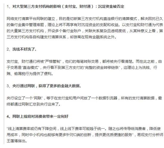 今年8月4日,央行支付结算司印发《中国人民银行支付结算司关于将非银行支付机构网络支付业务由直连模式迁移至网联平台处理的通知》。