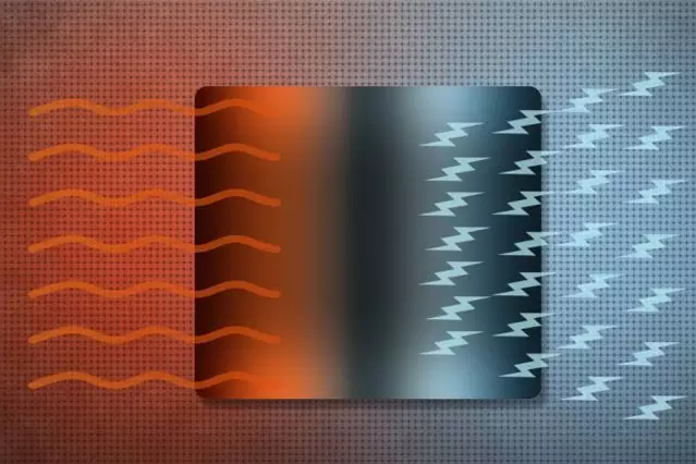 当热电材料置于温度梯度中时,比如一头热一头冷,材料中的电子就开始从热端流向冷端,从而产生电流。温差越大,电流越强,产生的电能就越多。对于给定材料,产生的能量大小取决于材料的电子传输特性。